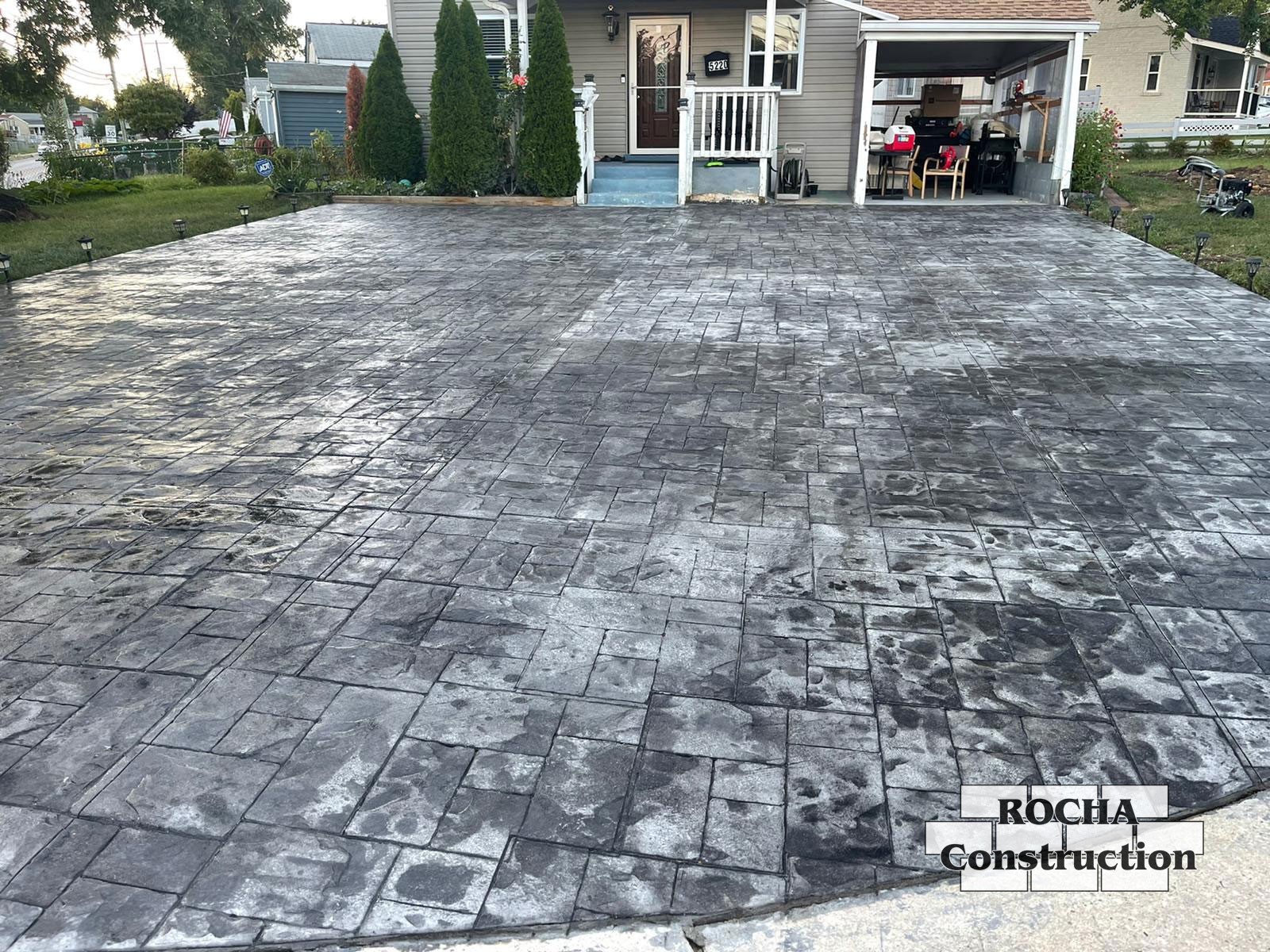 Stamped Concrete Patio FAQs1. What is stamped concrete? Stamped concrete is regular concrete that has been textured and patterned while wet to resemble brick, stone, tile, or other materials, adding decorative appeal to patios. 2. How long does stamped concrete last? With proper installation and maintenance, stamped concrete can last 25 to 40 years or more, depending on climate, usage, and care. 3. How much does a stamped concrete patio cost? Stamped concrete is usually more expensive than a basic poured concrete patio because of the extra labor and materials needed for stamping and coloring, but it is less expensive than natural stone or brick. 4. What types of patterns and designs are available? Stamped concrete can mimic brick, cobblestone, slate, tile, or wood planks, and can include various textures, patterns, and colored finishes. 5. Should I hire a professional or DIY? DIY is very difficult because stamping must be done while the concrete is wet, and proper coloring and sealing require experience, so professional installation is strongly recommended. 6. Do stamped concrete patios crack? Concrete can crack due to shrinkage, settling, or temperature changes. Control joints, proper base preparation, and sealing help reduce visible cracking. 7. How do I maintain stamped concrete? Maintenance includes regular cleaning, resealing every few years to preserve color and texture, and repairing any small cracks that develop. 8. Can stamped concrete be colored? Yes, integral color, stain, or acid‑etch techniques are used to add long lasting color to stamped concrete, giving a realistic natural stone or brick appearance. 9. Are stamped concrete patios slippery when wet? Stamped concrete can be slippery if smooth finishes are used, but textured stamps and a proper non slip sealer improve traction. 10. How do stamped concrete patios compare to natural stone? Stamped concrete can mimic the look of natural stone or brick at a lower cost, requires less maintenance, but may not have the same longevity or texture as real stone. |
